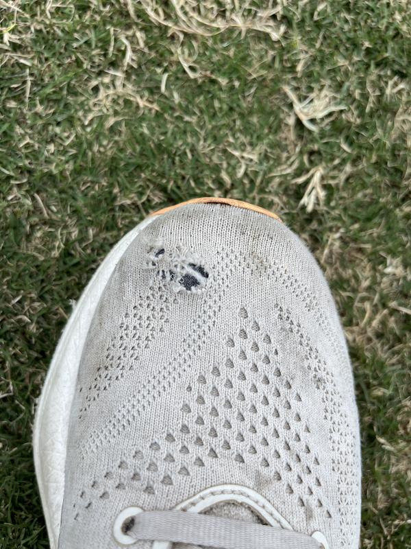 3 months into wearing this shoe that was so comfortable the top mesh starts to break down and literally had 6 holes in the top of the shoe, 3 on each shoe. Soooooooo disappointed!! I work 10 hour days and my feet were very comfortable but for the price the material does not hold up.