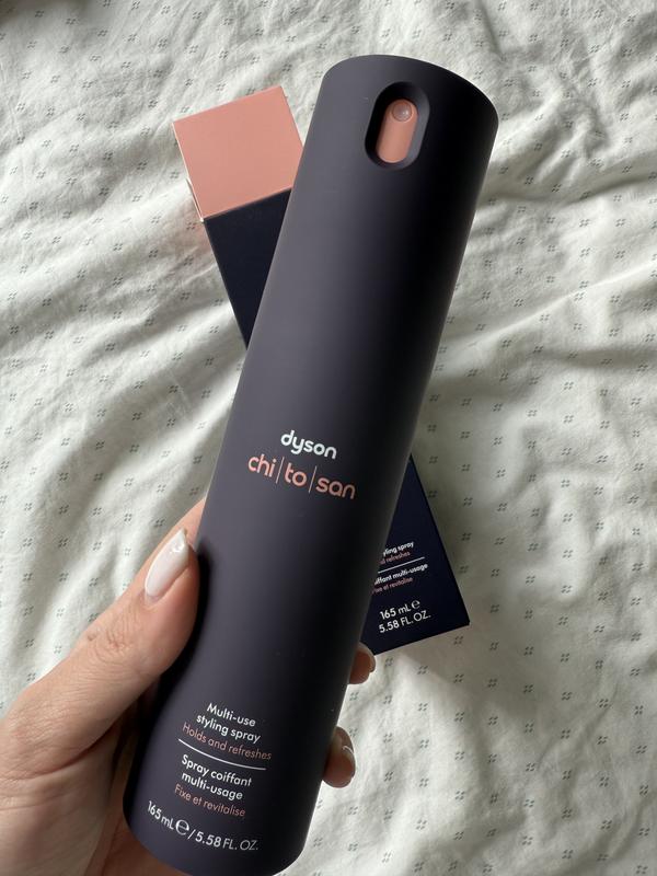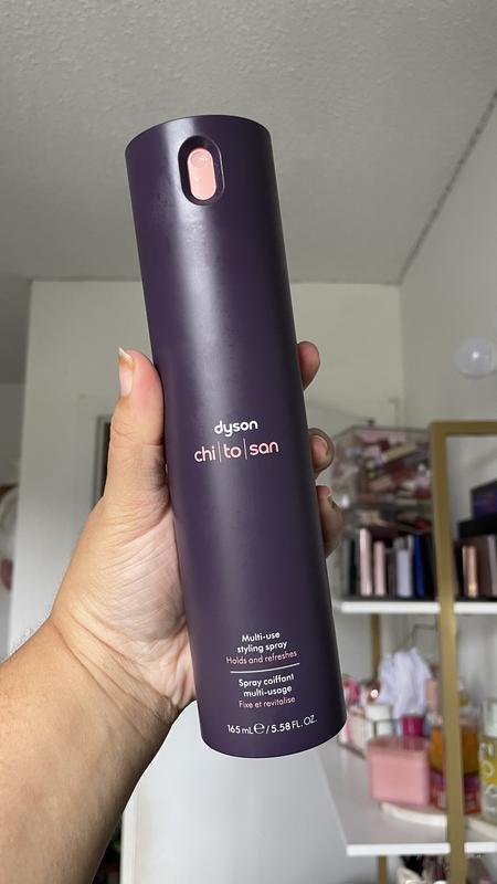 I’ve been using the Dyson Chi to san Multi-use styling spray for a few weeks now and am very impressed with it. The scent is subtle and reminds me a little of nature and the chitosan mushroom and bamboo that are part of the ingredients. I didn’t know what to expect for the high price point but now I see the benefits. I’ve used it mostly when straitghtening my hair with my Dyson Corrale and my hair stays in place but remains soft and smooth. I also find the hold stays in place and I can tie up my hair to go to the gym and when I take the hair tie out of my hair it is still perfectly strait from the Corrale. It lasts so much better than any other styling spray I’ve used. I spray it all through my hair generously and my hair stays in place but with movement. I highly recommend it.