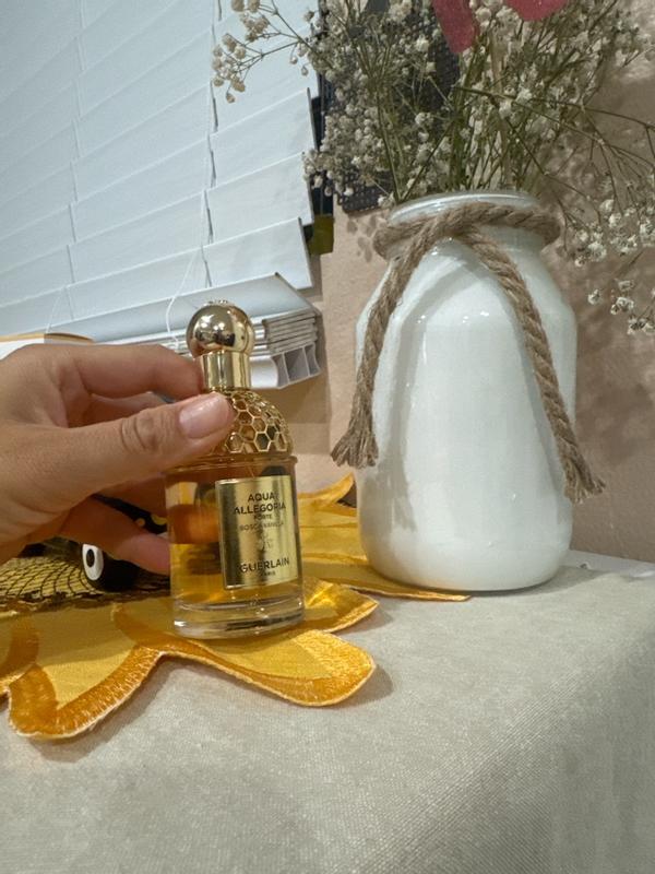 Aqua Alegria Fort Bosco is a dense, intense composition. The bottle is incredibly beautiful, resembling a honeycomb. I was pleasantly surprised to see the Guerlain logo on the lid and the sprayer. The fragrance is thick, enveloping, and long-lasting. It has a vanilla scent with a slight bitterness and a sea-like undertone. It lasts for 6-8 hours on the skin. I can't say it's unisex, but it's still a feminine fragrance