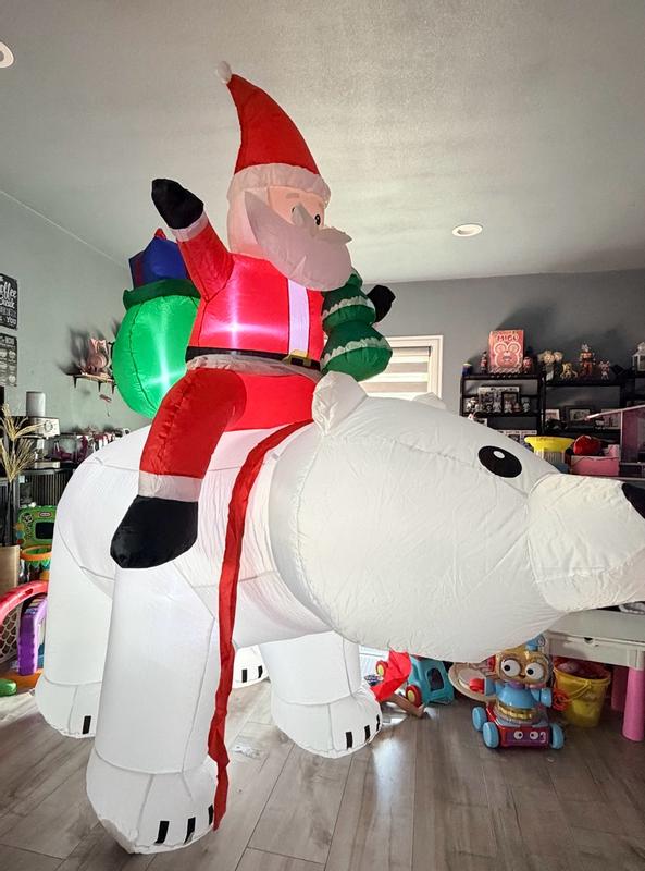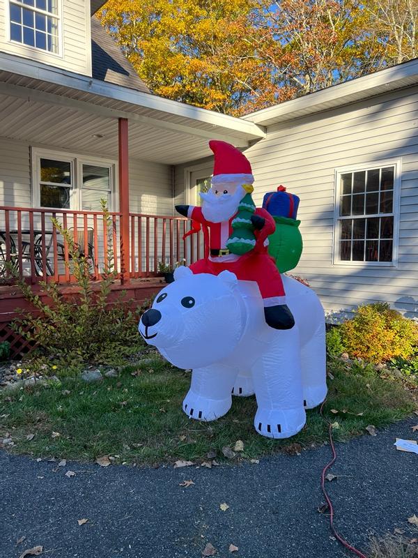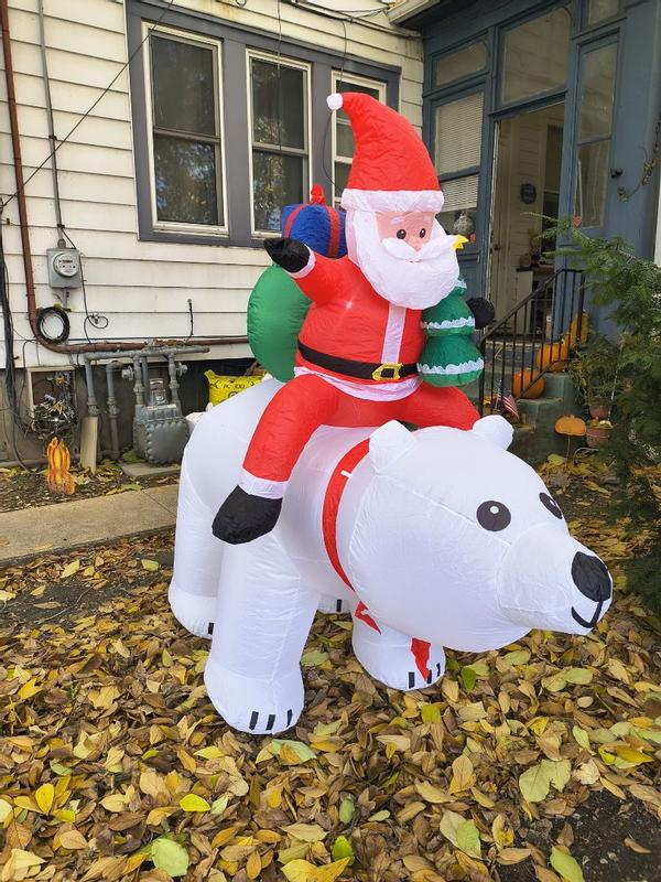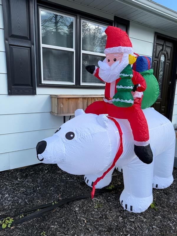 First Traditions Inflatable Santa Riding Polar Bear 6 ft.