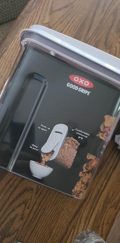 OXO POP 3.4 qt cereal dispenser is sturdy, easy to use, seals tight, pours clean, and keeps cereal fresh—worth every penny!worth monney I recommend it