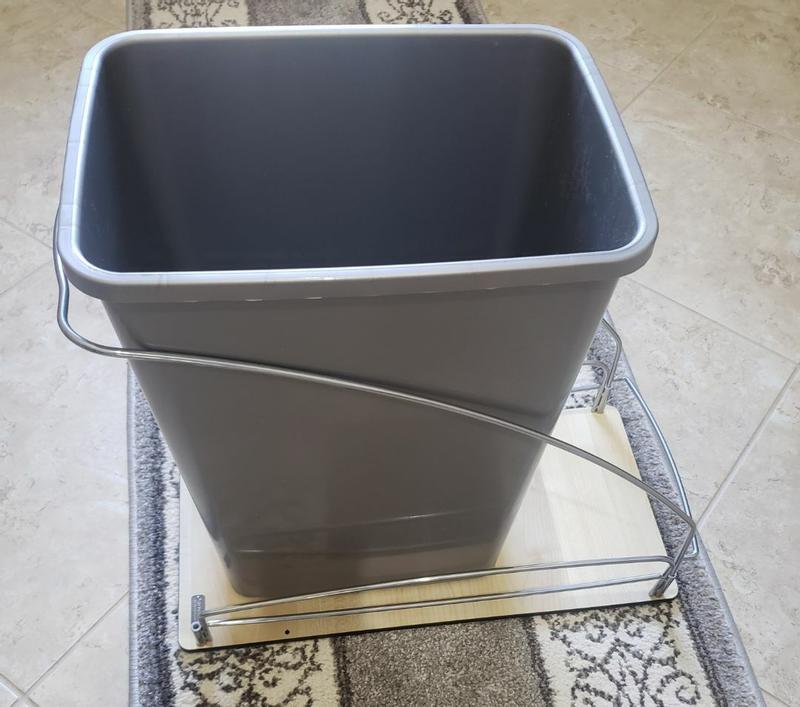 I received the Rev-A-Shelf Single 35 quart pull out tray can in the shade of gray. I have yet to have this installed as it’s a tricky process with the storage space we have to work with. The durability and functionality of this product is very practical and I would love to recommend for you once I have installed this myself! The price point is reasonable considering the size.