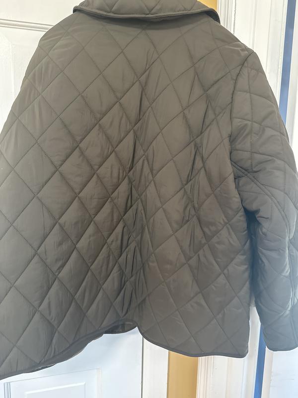 It’s a very nice comfy jacket with is perfect for fall weather.The quilted jacket makes it look like a very sexy and chic look . The color green is fall color and it gives it a warm cozy feel you need got the chilli fall weather